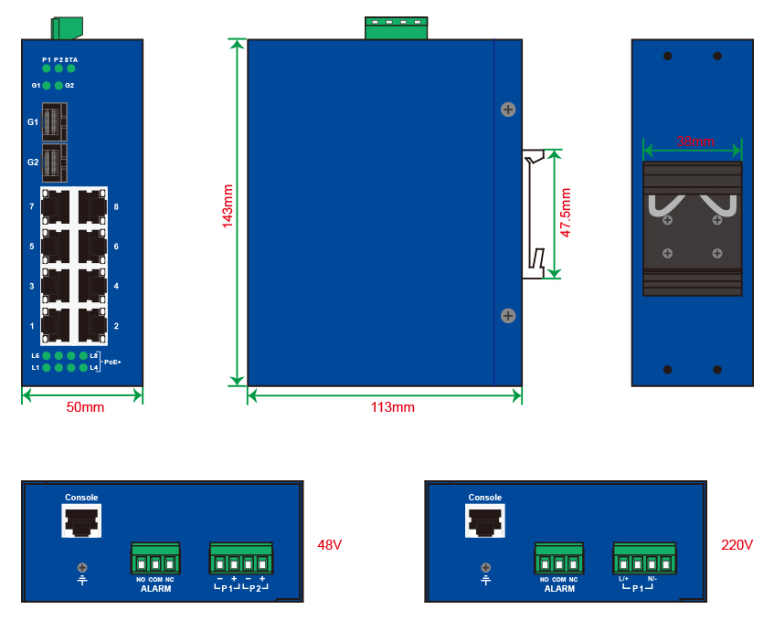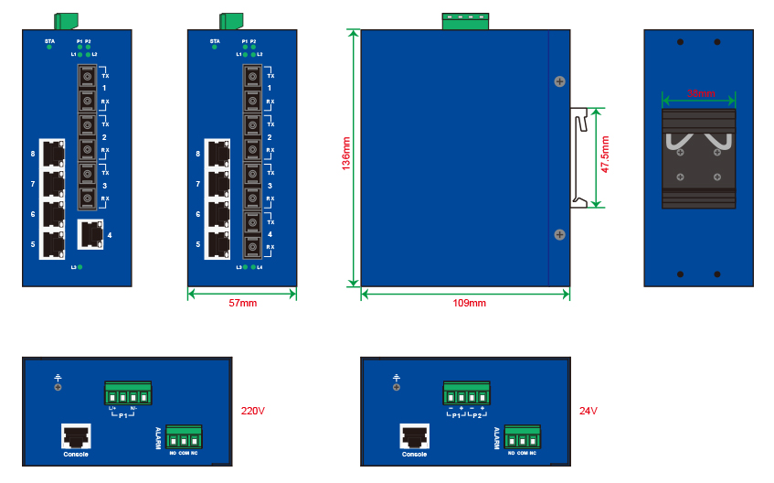 百兆光口 最多8個(gè)百兆光,SC/ST/FC可選